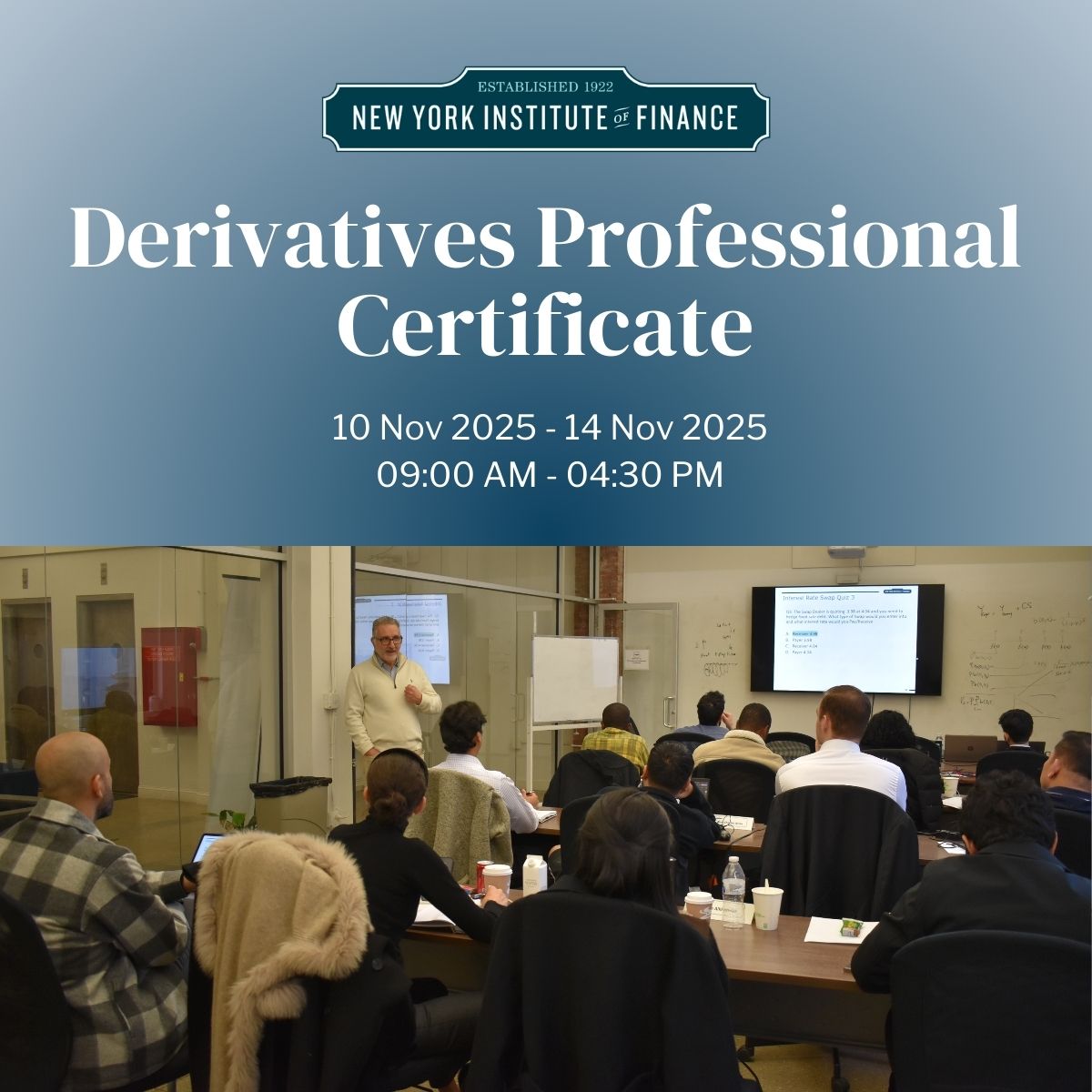 @NYIFinance Derivatives Mastery for Finance Leaders Derivatives drive today’s global markets - shaping risk, liquidity, and performance. To lead in this space it demands technical command, institutional credibility, and the ability to apply advanced tools in practice. The DerivativeNV