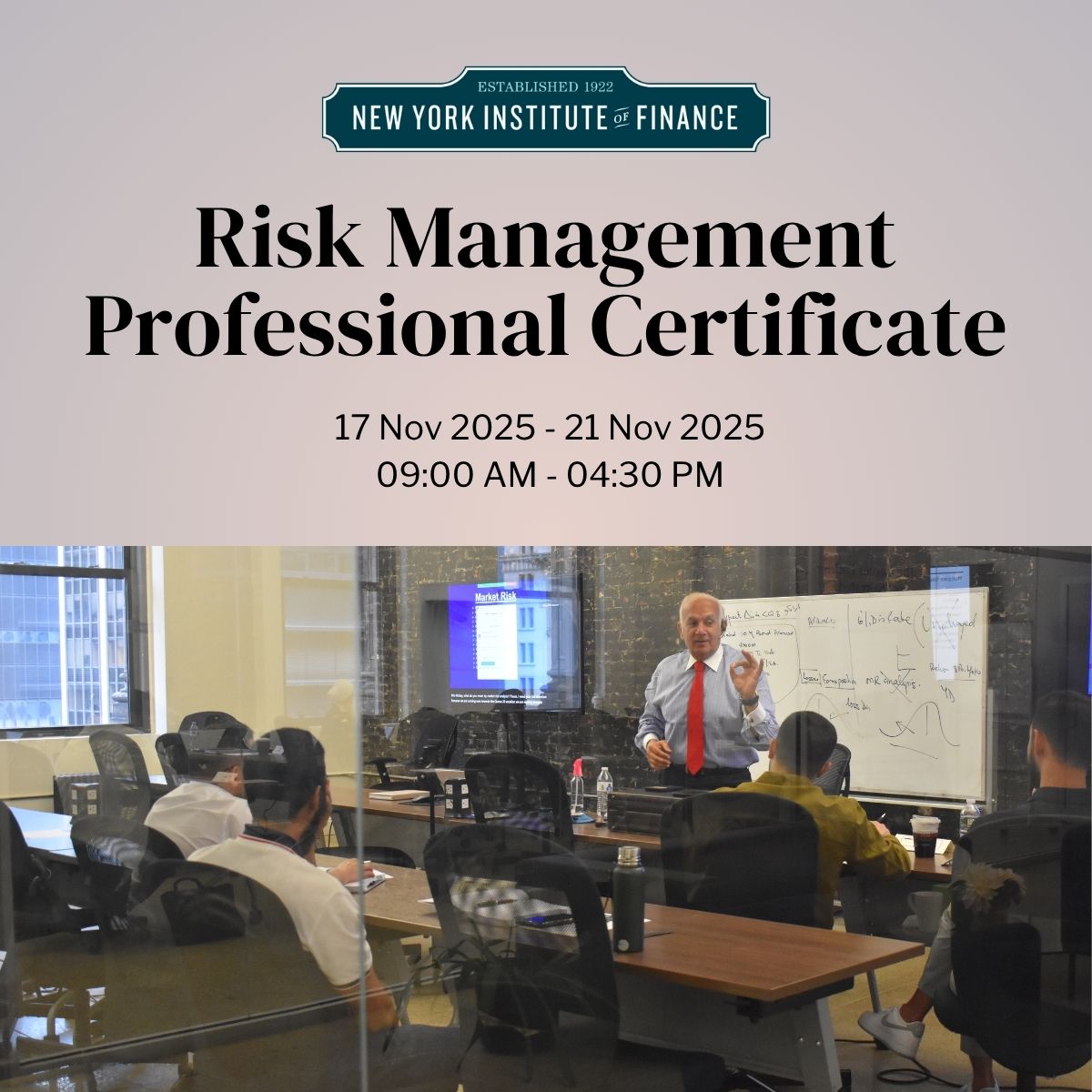 @NYIFinance Elevate Your Expertise in Risk Management Risk defines outcomes for every financial institution. Leaders who can quantify exposures, anticipate shocks, and make informed decisions are indispensable. The Risk Management Professional Certificate from the New York Institute of