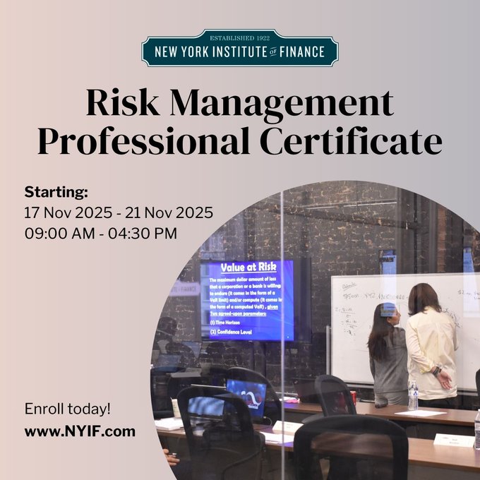 @NYIFinance Strengthen Your Command of Risk Management with NYIF’s Professional Certificate In today’s financial landscape, risk is the defining factor of institutional resilience. Organizations need leaders who can interpret complexity, quantify exposures, and design strategies tE2bI
