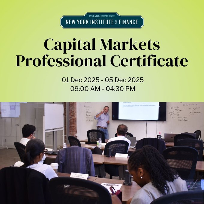 @NYIFinance Understand the Engine of Global Finance: Capital Markets Every investment, risk transfer, and funding decision flows through the capital markets. Those who understand how these markets truly operate command an edge that extends across asset classes, institutions, and economies.