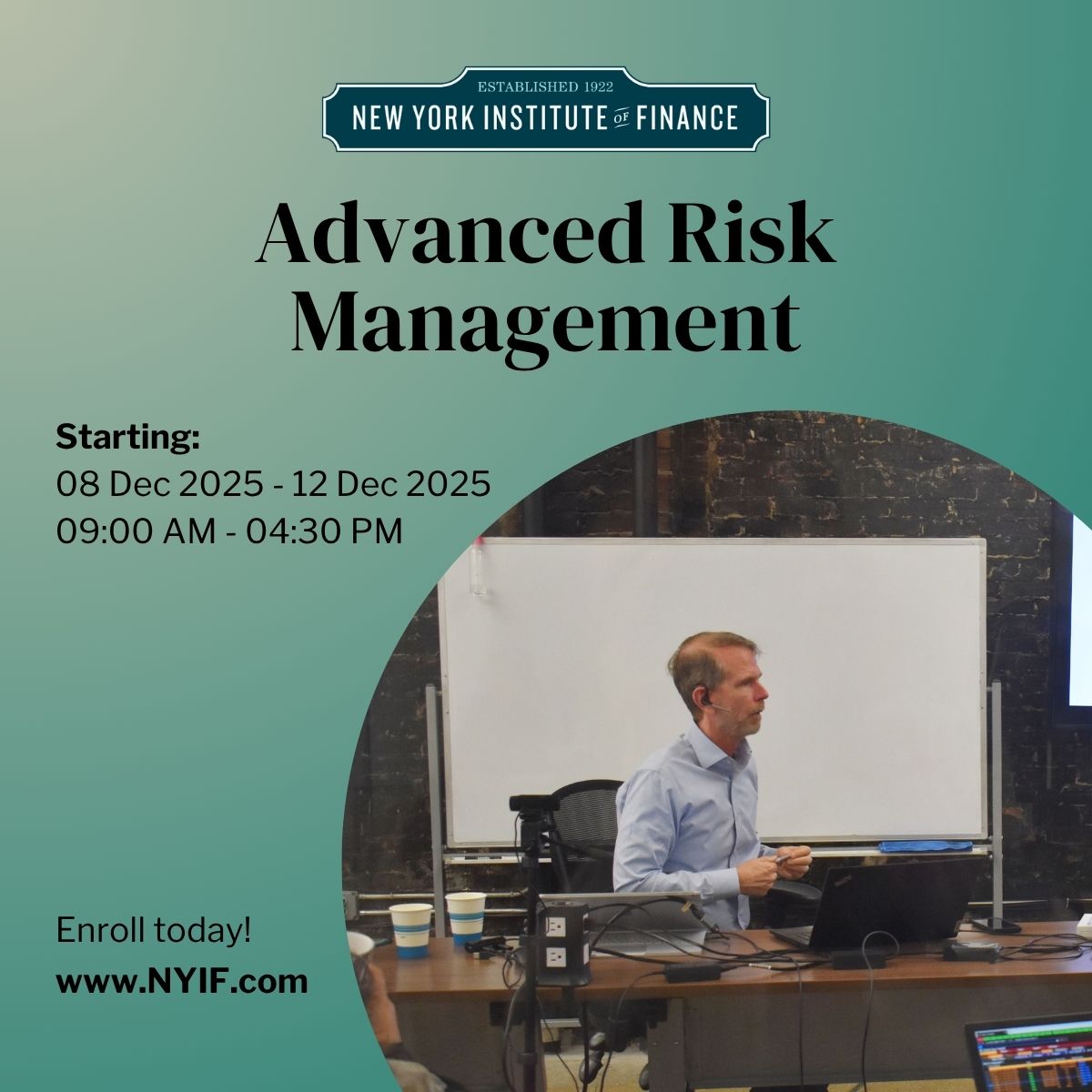 @NYIFinance Command Risk. Redefine Precision. Uncertainty drives markets - but only those who understand risk at its core can turn volatility into opportunity. The Advanced Risk Management Professional Certificate from the New York Institute of Finance (NYIF) goes beyond conventional